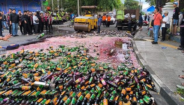 “Hari ini kami memusnahkan 5.555 botol miras dan 365 knalpot brong. Ini adalah langkah konkret untuk memastikan masyarakat dapat merayakan Lebaran dengan nyaman,” ujarnya.